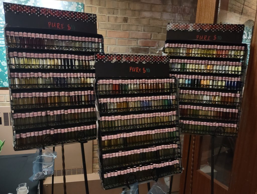 Beautiful handcrafted scented candles, Designer fragrance roll-on body oils, Essential oils, 6 piece bath sets, shower gels, and lotions, etc.