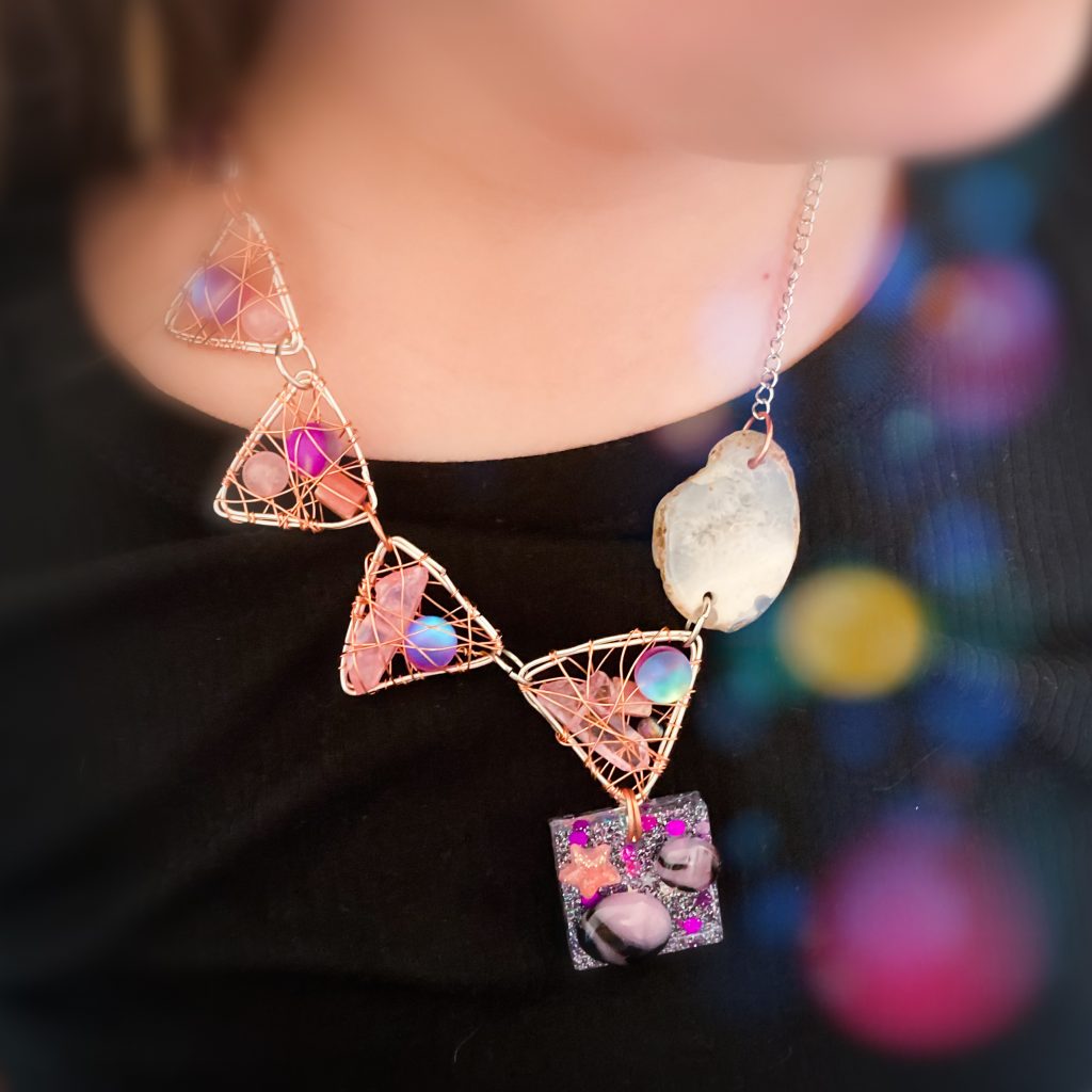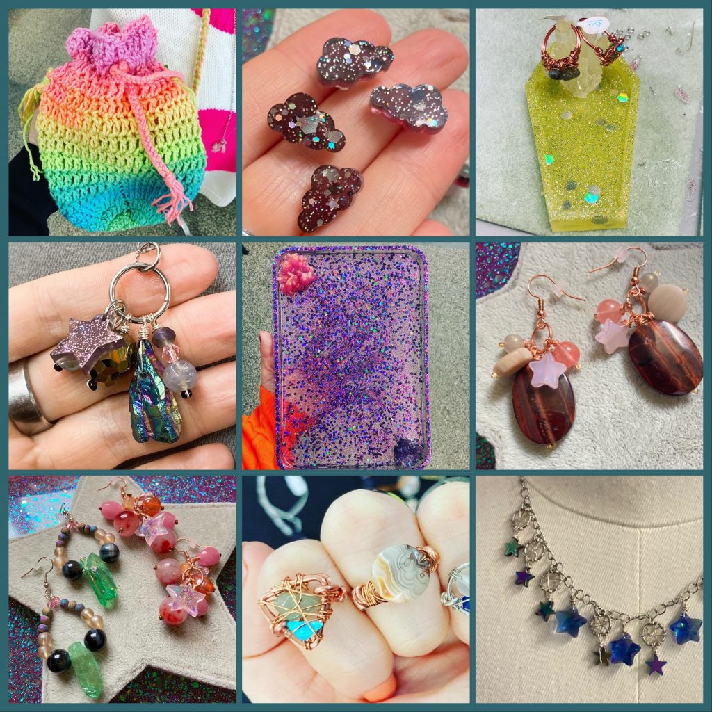 My name is Katie. I’m a maker with a shop in the Reo Town Marketplace. I make jewelry, epoxy, knits, crochet, tiedye and scrunchies. My style is very unique, funky and colorful. I love rainbows, glitter, and big earrings. The things I make embrace all of this while being tasteful and eclectic.