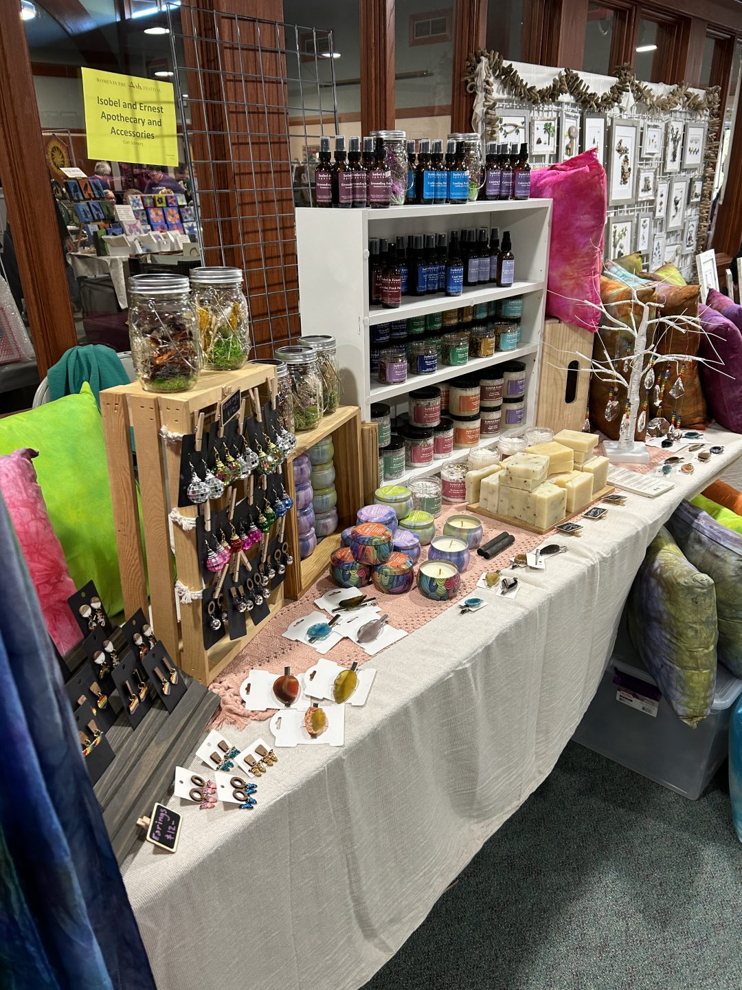 Enjoy small-batch and handmade plant-based room and body sprays and oils, sugar scrubs, bath salts, soap, herbal tea blends, and candles. In addition to my bath and body products, I also create hand dyed silk scarves, pillows, hand-sewn bags, scrunchies, and wallets.