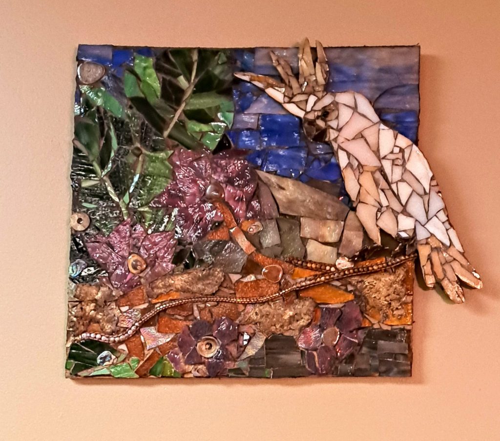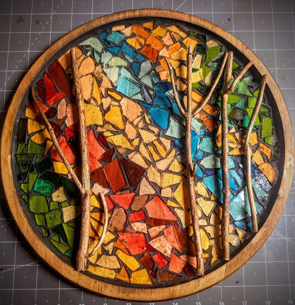 Local Michigan artist working with glass, mosaic, wood, mixed media and some whimsy. I draw from nature, found objects, and both light and darkness.